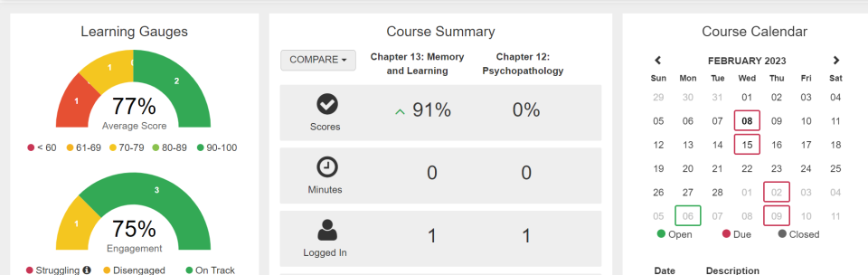 Oxford Insight (OI) is a guided and curated learning environment (available in your school’s LMS or outside of it) that tightly integrates the best-in-class, trusted content of the new fourth edition of Animal Behavior with online tools, gradable assessments, media resources, activities and exercises, and instructor analytics. Oxford Insight simplifies course management, drives student engagement, and improves student performance.