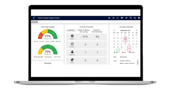 Oxford Insight delivers high-quality content within a student-centered course delivery platform that optimizes the teaching and learning experience