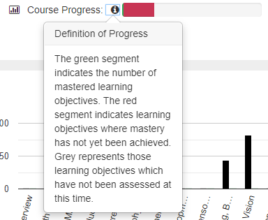 The proficiency bars for each chapter are indicative of a student’s performance on the learning objectives in the respective lesson. They start as grey as no assessments have been attempted. As a user completes assessments, the system determines proficiency (or lack of proficiency) and shows it in the mastery bar.